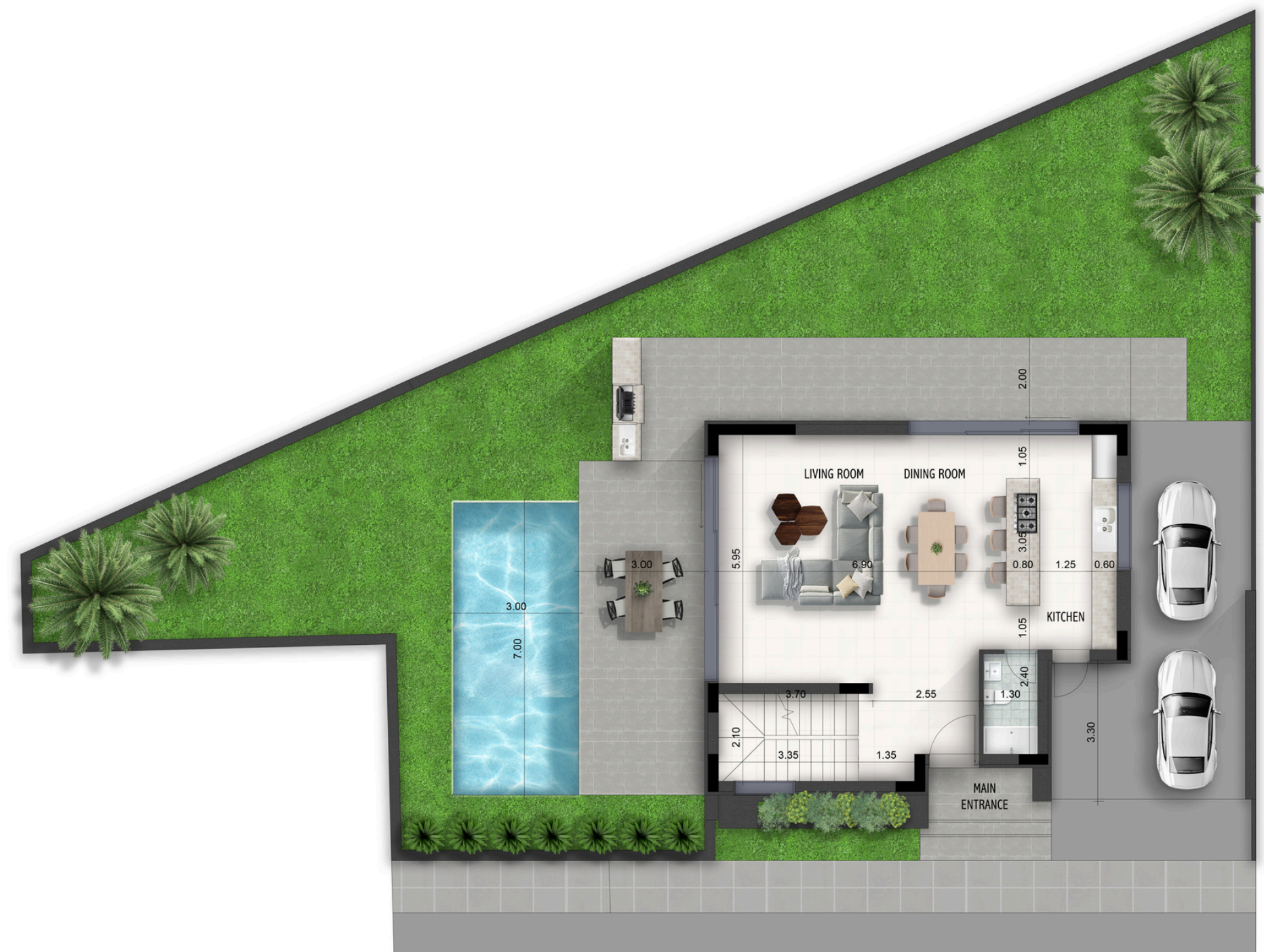 Περιοχές ◆ Ορόκλινη Τουριστική Περιοχή ◆ Λάρνακα (Επαρχία) ◆ Ορόκλινης (τουριστική περιοχή) ◆ Ναυτικός Όμιλος Λάρνακας ◆ Απόσταση από θάλασσα ή παραλία (μέτρα) 300 Χαρακτηριστικά ◆ Καινούργιο ◆ Σπίτι ◆ Ανεξάρτητο ◆ Υ/Δ 3 ◆ WC 3 ◆ Μπάνια/Ντους 3 ◆ ΠερπΘάλ | ◆ Πισίνα (Ιδιωτική) ◆ Επίπεδα 2 ◆ Καλυμ: 170 μ2 ◆ Τιμή/μ2 €2,547/μ2 ◆ Βεράντα: 97 μ2 ◆ Ημ. Κατασκ. 2027 () ◆ Κήπος ◆ Κήπ. Ταρ. ◆ Συσκευές Τεμάχιο Γης ◆ Τεμάχιο Γης 354 μ2 ◆ ασφαλτωμένος δρόμος ◆ Χώρος Στάθμευσης (Καλυμμένος) |