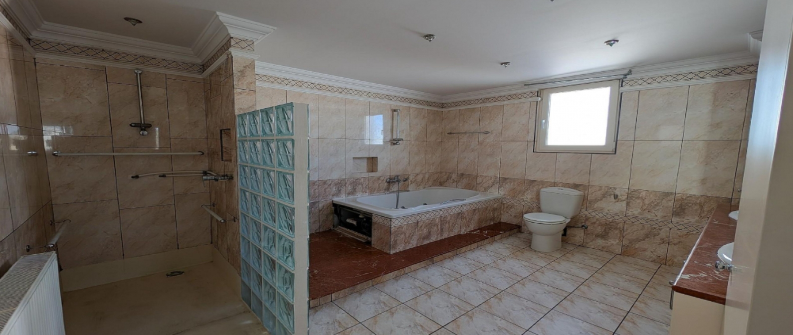 Βρίσκεται στην κεντρική περιοχή του Αγίου Νικολάου της Λάρνακας, αυτό το εντυπωσιακό τριώροφο κτίριο προσφέρει έναν μοναδικό συνδυασμό δύο ανεξάρτητων κατοικιών σε ένα ακίνητο. Ιδανικά κατάλληλο για μια μεγάλη οικογένεια ή μια επένδυση υψηλής απόδοσης, το ακίνητο βρίσκεται σε βολική τοποθεσία μόλις 1,4 χλμ. από το κέντρο της πόλης και 3 χλμ. από την πλησιέστερη παραλία. Ισόγειο Κατοικία Κατασκευής 1986 Αυτό το ευρύχωρο σπίτι προσφέρει 205 τ.μ. εσωτερικού χώρου διαβίωσης και μια διαρρύθμιση σχεδιασμένη για άνεση • Εσωτερικό Διαθέτει 3 υπνοδωμάτια, ένα οικογενειακό μπάνιο, ένα W C επισκεπτών, ένα μεγάλο σαλόνι και τραπεζαρία, ξεχωριστή κουζίνα και έναν επιπλέον χώρο καθημερινής τραπεζαρίας. • Βεράντες Περιλαμβάνει 6 τ.μ. στεγασμένων βεραντών και ένα γενναιόδωρο 37 τ.μ. ακάλυπτου εξωτερικού χώρου. Ανώτερη Διώροφη Κατοικία Κατασκευής 2005 Εκτείνεται στον 1ο και 2ο όροφο, αυτή η μεγάλη διώροφη κατοικία 402 τ.μ. είναι προσβάσιμη μέσω εσωτερικής εξωτερικής σκάλας και ανελκυστήρα. • 1ος Όροφος Μεγάλο χολ εισόδου, πολλαπλά καθιστικά και σαλόνια, τραπεζαρία, ξεχωριστή κουζίνα με δικό της χώρο τραπεζαρίας, πλυσταριό και τουαλέτα επισκεπτών. Περιλαμβάνει επίσης δωμάτιο υπηρεσίας με ιδιωτικό μπάνιο. • 2ος Όροφος Διαθέτει επιπλέον καθιστικό και τραπεζαρία, 3 υπνοδωμάτια και οικογενειακό μπάνιο. Το κυρίως υπνοδωμάτιο περιλαμβάνει γκαρνταρόμπα και ιδιωτικό μπάνιο με τζακούζι. | |||||