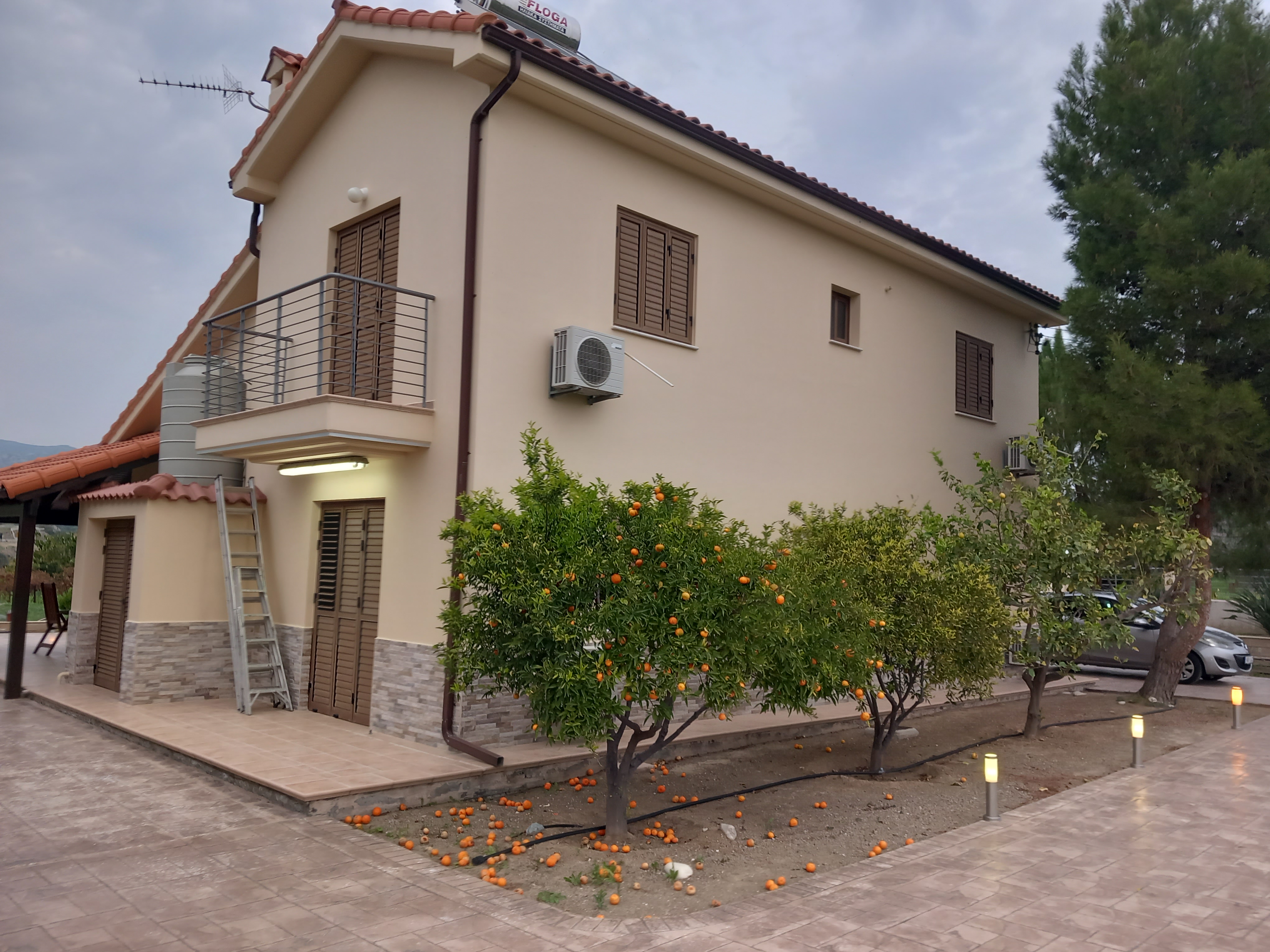 This property is furnished. Has also appliaces including: Cooker, Dish washer, Dryer, Extraction fan, Fridge, Kettle, Microwave, Oven, Washing machine. It has 4 bedrooms, 2 wc and 2 bath/showers. Main features include: Garden, store room, granite kitchen, study room, open plan layout, double glazing, satellite dish antenna, gated parking, water pressure system, alarm system, fireplace, television, three phase current, barbecue, kitchenette. Central Heating: a/c hot/cold, provision for central heating. It also has a water heater working with : solar panels, electricity. The Energy Efficiency Class of the building is B+. The House was constructed in 2004. The plot characteristics are: within planning zone G3, has a build coefficient of 10.000% with covered coefficient of 10.00%, maximum building permissible height 8.30 meters, and maximum number of floors 2. Other characteristics of House: electricity, telephone, water connection. Τhe plot area is 2,700 square meters. After getting relevant permits from the local authorities, you can build an additional building of total area 100 sqrm. Walking distance from: corner shop, bakery. 5 minutes from: primary school, supermarket, Church. View: country side/green area. Condition: Excellent condition. Other Features: Bright. The type of road leading to the property is tarmac secondary road. Situated in a cul-de-sac, that is a no end road, means that there is no traffic outisde your future house. Ideal for kids to play. The property has no VAT tax. This House has a Title Whole Share and so the new owner can utilise it as he pleases.