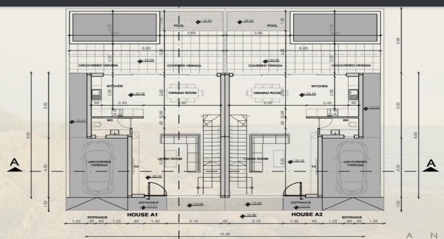 Has distance from main higway 5.0 km. Has distance from from sea or beach of 1 km. Two and three bedroom houses with 2 toilets, a bathroom, in the Master Bedroom a shower and toilet. Internal area 131 sqm, in a quiet area in Pervolia Larnakos, close to a school and playground, suitable for families. It is within walking distance of the sea, supermarkets, pharmacy, next to the village of Kiti where you will find restaurants, kiosks, cafes. Very close to Larnaca airport and the city center. The buildings start in September 2024 and end in December 2026. The Energy Performance Class of the Buildings is A. There are 77 properties available designed with modern and elegant ideas. Swimming pool not inclduded in the price. Type A houses have a covered area of 130sqm and verandas area 30sqm. Type B houses have a covered area of 100sqm and verandas area 25sqm, also these are excluding parking areas. | |||||