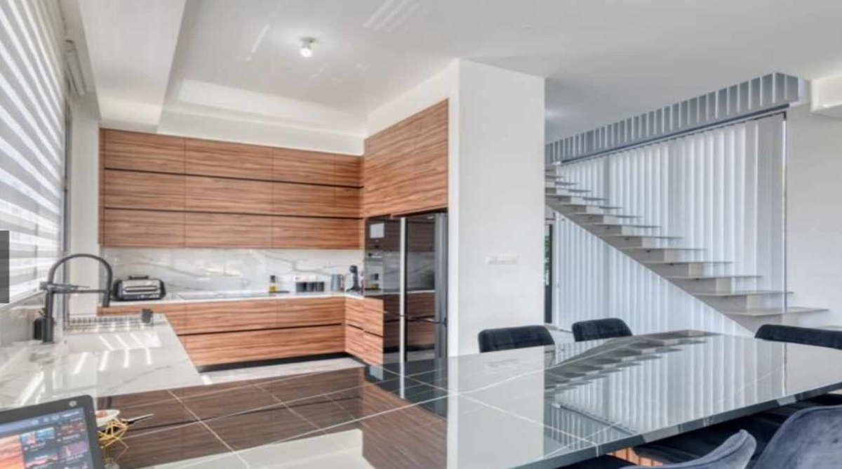 This property is furnished. It has 4 bedrooms, 4 wc and 3 bath/showers. Main features include: Private pool, garden. The Energy Efficiency Class of the building is A. The House was constructed in 2022. Τhe plot area is 557 square meters. Walking distance from: bank, pharmacy, hair dresser, beauty salon, corner shop, bakery, park. 5 minutes from: nursery, primary school, secondary school, university, supermarket, childrens play area, gymnastics center, Church. View: mountain. The type of road leading to the property is tarmac secondary road. The property has no VAT tax. This House has title deed ready.