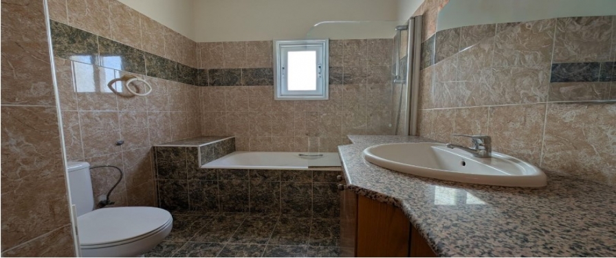 It has 3 bedrooms, 3 wc and 2 bath/showers. Main features include: Garden, store room, double glazing, en suite bath/shower, water pressure system. The Energy Efficiency Class of the building is C. The House was constructed in 2002. Τhe plot area is 292 square meters. Walking distance from: bank, pharmacy, hair dresser, beauty salon, corner shop, bakery, park. 5 minutes from: nursery, primary school, secondary school, university, supermarket, childrens play area, communal swimming pool, gymnastics center, Church. The type of road leading to the property is tarmac secondary road. The property has no VAT tax. This House has title deed ready.