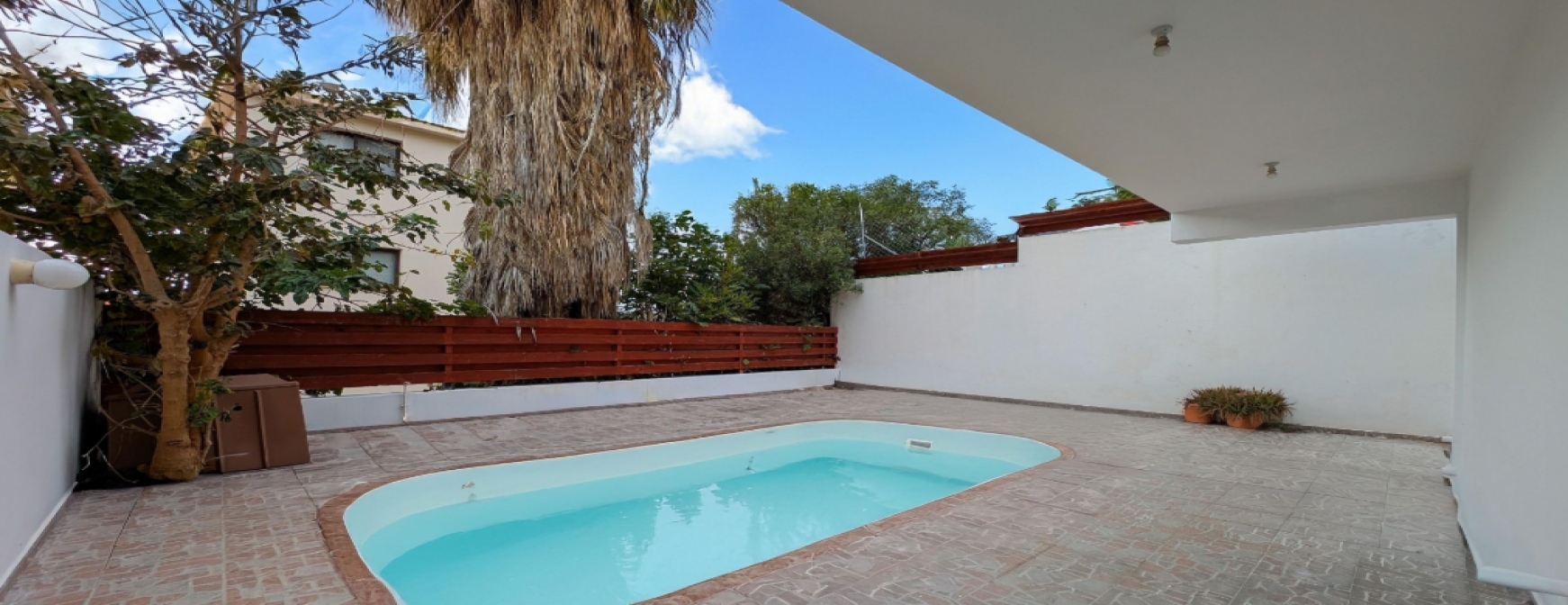 It has 3 bedrooms, 3 wc and 2 bath/showers. Main features include: Private pool, store room, en suite bath/shower, water pressure system. The Energy Efficiency Class of the building is B. The House was constructed in 2007. Τhe plot area is 140 square meters. Walking distance from: hair dresser, corner shop, bakery. 5 minutes from: primary school, supermarket, childrens play area, Church. The type of road leading to the property is tarmac secondary road. The property has no VAT tax. This House has title deed ready.