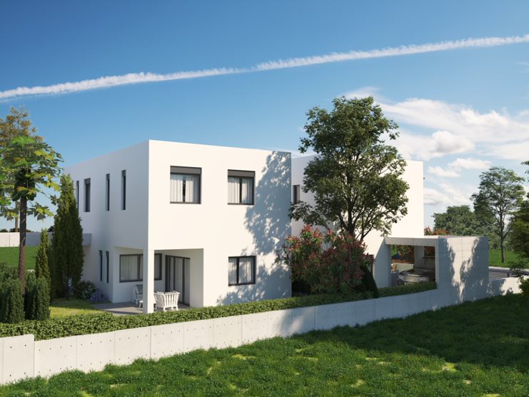It has 4 bedrooms, 3 wc and 2 bath/showers. Main features include: Garden, store room, granite kitchen, open plan layout, double glazing, gated parking, ceramic tiles, modern architecture, en suite bath/shower, water pressure system, shutters (electric), three phase current, photovoltaic panels (for producing electricity), strctured cabling. Central Heating: with electric system, underfloor. The building has provision for air-conditioners. It also has a water heater working with : solar panels, electricity. The Energy Efficiency Class of the building is A. The House was constructed in 2023. Τhe plot area is 265 square meters. 5 minutes from: nursery, primary school, secondary school, supermarket, childrens play area, Church. View: mountain, country side/green area, town. The type of road leading to the property is tarmac secondary road.